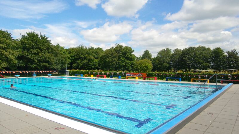 Het openluchtzwembad heeft 3 bassins; een wedstrijdbad van 25 meter, een recreatiebad en een peuterbad. In 2020 is er een spraypark bijgekomen. De temperatuur van het diepe bad is 23 graden, van de ondiepe baden 21 graden.