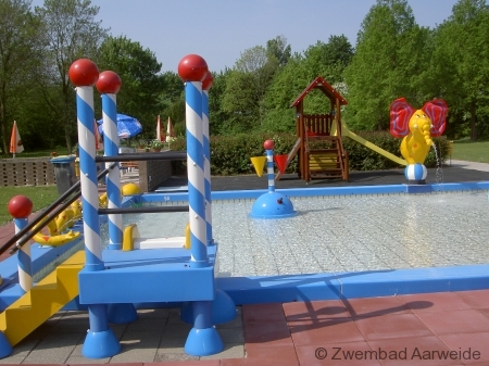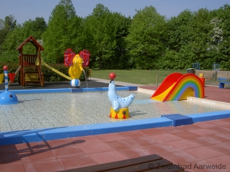 De drie bassins grenzen aan een heerlijke grote zonneweide. Voor de oudere jeugd is er een voet- en volleybalveld. Daarnaast zijn er twee springkussens, één voor de kleinsten en één voor de oudere kinderen. Zwembad Aarweide heeft ook een grote glijbaan die in een apart bassin eindigt. Het peuterbad heeft een eigen zonneweide. Bij de kiosk, die op warme dagen geopend is, zijn snoep, snacks, ijs en drinken te koop.
